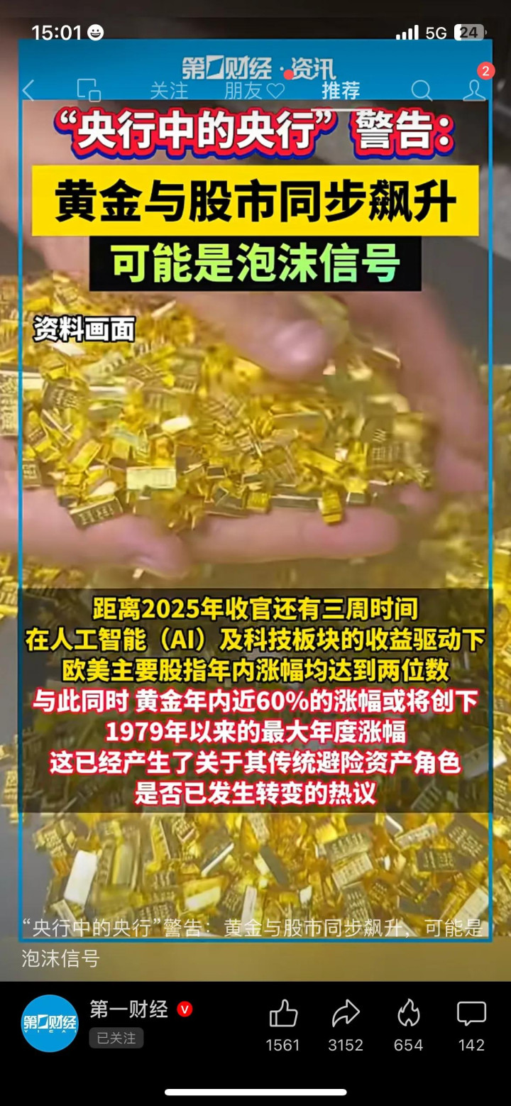 先看两组直观数据,就能感受到这次市场走势有多反常。距离2025年收官还有三周,欧美主要股指已经靠着AI、高端制造等热门板块强势拉升,年内累计涨幅普遍突破两位数,部分科技龙头股涨幅甚至超过30%,市场乐观情绪拉满;而作为传统避险资产的黄金,表现更是亮眼,年内涨幅逼近60%,距离1979年创下的年度最大涨幅纪录仅一步之遥,不管是个人投资者还是各国央行,都在加大黄金配置力度。但反常点就在于,黄金的核心属性是“避险”,以往股市下跌、经济动荡时才会大涨,如今和股市同步走高,连国际清算银行都直言“黄金的投机属性正在远超避险属性,逐渐偏离本身价值”。