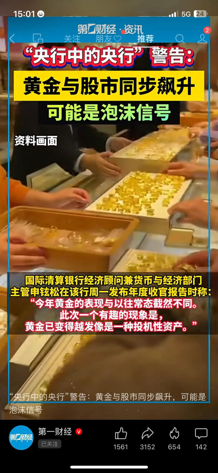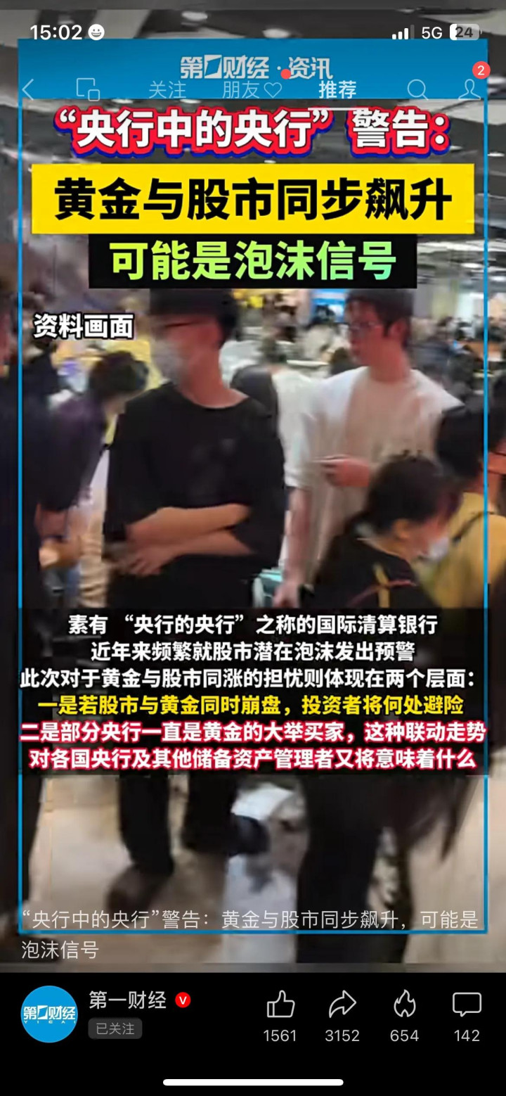 后续可以重点关注两个方向的动态,及时调整投资节奏。一是国际清算银行是否会释放更多风险提示,以及各国央行是否会出台相关调控措施;二是黄金和股市的成交量变化,若后续出现成交量骤降、涨幅放缓的情况,可能就是回调的前兆,得提前做好应对准备。市场越是反常,咱们越要保持理性,别被短期涨幅冲昏头脑,稳妥保住资产才是关键。